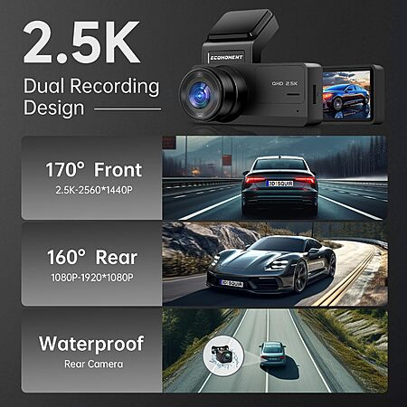 Ecomoment 2.5K S70 Dual Dash Cam w/ 32GB Memory Card $37.97 + Free Shipping