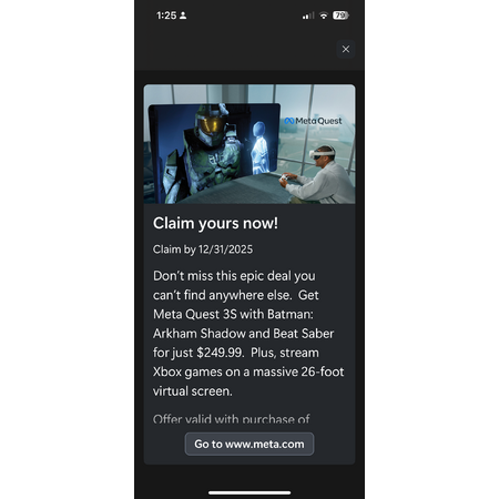 Listing the Meta website as the URL, but you actually need to go to your Xbox app or console to get a special URL to access the promotion. (Included app images for clearer directions)
