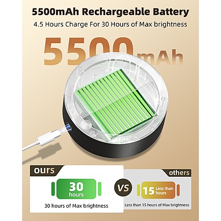 • 5500mAh Rechargeable Wall Lights: Provides up to 65 hours of medium brightness, fully charged in under 4 hours.