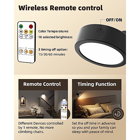 • Remote & Touch Control: Easily adjust brightness with remote or touch control.