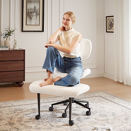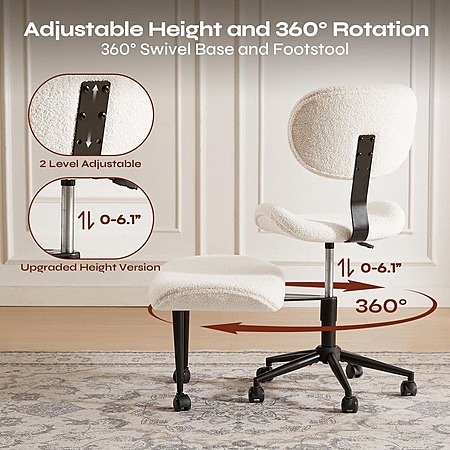 Pinmoco Teddy Fabric Ergonomic Swivel Office Chair w/ Footrest (Off-White) $84 + Free Shipping