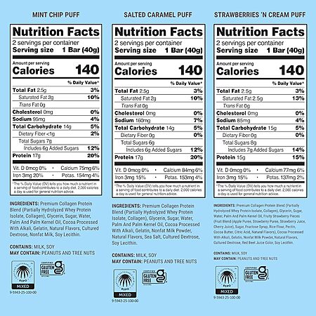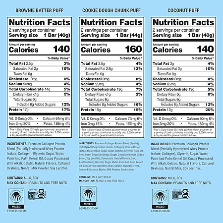 Great macros on all of these, with higher than 1g protein per 10 calories. Consistency not for everyone, but I love them. They utilize collagen protein, which is not amazing for muscle gain if you derive a lot of your protein from it, but from what I've read, it's perfectly fine if you supplement with it, so in my mind: one of these a day towards my protein goal is kosher.