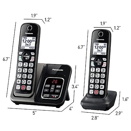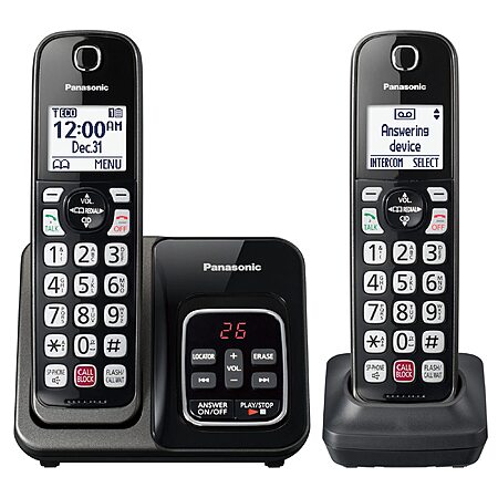 Model: Panasonic Cordless Phone with Answering Machine, Call Block, Bilingual Caller ID, High-Contrast Display, 2 Handsets - Metallic Black