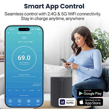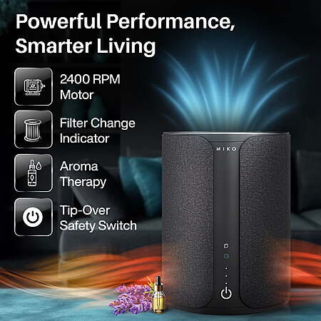 | Product Description: | Improve your indoor air with the Ibuki 2.0 Miko Smart Home Air Purifier, designed to clean rooms up to 1500 square feet maximum coverage. This high-efficiency unit helps reduce dust, smoke, odors, and other airborne particles through a powerful 3-stage filtration system: a fabric pre-filter, an H13 True HEPA filter, and a built-in ionizer (active on fan speeds 3–5). Customize your air purification with five fan speeds ranging from Low to Max. Use the responsive touch control panel or connect through the MyMiko app for remote operation. Set a timer for 4 or 8 hours, or let it run continuously—perfect for both day and nighttime use. Quiet at under 40 dBA on the lowest setting, this purifier also includes an aromatherapy tray with an absorbent pad for essential oils. A filter replacement indicator notifies you when it’s time to change filters, and a built-in safety shutoff powers the unit down if tipped or if the bottom cover is opened. With advanced control, quiet performance, and sleek design, the Miko Air Purifier is your complete solution for cleaner, fresher indoor air. Cleans spaces up to 1500 sq ft max coverage using a 3-stage filter system with fabric pre-filter, H13 HEPA filter, and ionizer Removes dust, smoke, odors, and other airborne particles for cleaner indoor air App connectivity for remote control of fan speed, timer, and power Five fan speeds with ultra-quiet operation Includes essential oil tray, filter change indicator, and tip-over safety shutoff Features: Covers up to 1500 sq ft 3-stage HEPA filtration App control 5 fan speeds Aromatherapy tray |