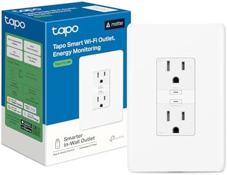 Model: TP-Link Tapo Smart Plug P210M, Wi-Fi in-Wall Outlet, Matter Compatible, Energy Monitoring, 15A/1800W Max, Works with Alexa, Apple Home, Google Home, SmartThings, Voice/Remote Control, ETL Certified