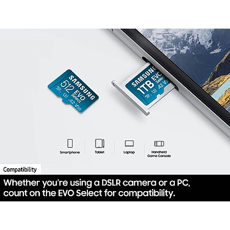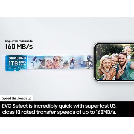 Used - Like New: Samsung EVO Select microSDMemory Card + Adapter, 256GB microSDXC, Up-to 160 MB/s $15.81