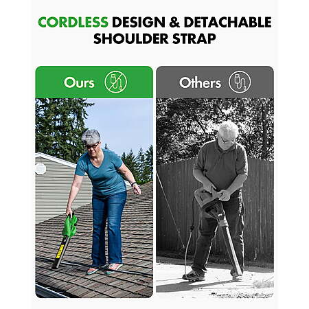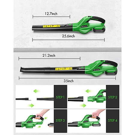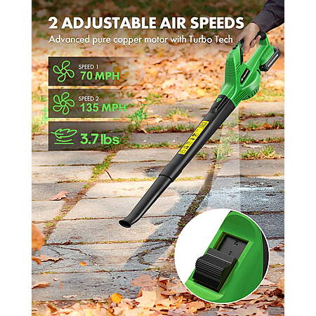 | Product Description: | Take your cleaning to the next level with the Firstness Battery Powered Cordless Leaf Blower! This cordless leaf blower offers two adjustable speed settings, allowing you to easily switch between a powerful 135MPH for tough jobs and a gentle 70 MPH for lighter tasks. Whether you're dealing with indoor dust or outdoor leaves, the Firstness battery Leaf Blower is perfect for every situation. Designed with user comfort in mind, the adjustable blow tube fits people of all heights, ensuring a personalized experience for everyone. Weighing in at less than 3.7 pounds, this cordless powerful leaf blower is so lightweight that you can easily maneuver it with one hand. The non-slip, flexible rubber handle provides comfort during extended use, making your cleaning a breeze. Thanks to its innovative two-section tube design, you can use the Firstness Leaf Blower standing or sitting to suit the way you like to work. Experience the freedom of cordless convenience and transform your chores with the Firstness Leaf Blower - performance meets comfort. Update your cleaning routine today! Long Working Time: Firstness cordless leaf blower is equipped with 2 batteries and charger. With them, you can get more than 40 minutes of operation time. Provide you with the longest working time. Meet the needs of different types of cleaning work. Wide & Effective Work: Firstness electric leaf blower is equipped with a powerful motor, 135MPH and 18000RPM will provide you with easy and efficient work. With a cordless design, the battery leaf blower can easily pass through the yard, living room and various gaps. Suitable for lawn care, garden, yard, warehouse, car and house cleaning. 2 Tubes for Different Use Heights: The leaf blower cordless has two tubes in the package, which can be easily installed or removed. After installing 2 tubes, you can clean the floor without bending over. When using one tube, you can also easily complete the desktop, railing cleaning. A more ergonomic design can help clean more effectively. Lightweight & Quick to Assemble: Firstness cordless battery leaf blower weighs only 3.7 pounds, reducing your cleaning burden and improving cleaning efficiency. After receiving the package, just insert the tube and the hair dryer will work. Always Support the Product: There is a leaf blower, battery, a charger and a user manual in the package. We provide you with good and professional after-sales service and will work hard to solve any product problems. Features Cordless 2 Li-ion batteries with 2-hour fast charger. Two speeds: 70 MPH and 135 MPH. Two tubes can be combined into a grow blower or used separately. Suitable for light yard work, patio, garden, car, construction site, camping, workshop and woodworking. Compact and detachable for easy storage. Package Includes 1 * Cordless Leaf Blower 1 * Upper Tube 1 * Lower Tube 2* 2.0Ah Battery 1 * Charger 1 * User Manual Battery Maintenance Tips 1. Clean the machine shell regularly with a soft cloth, preferably once after each use. Make sure that there is no dust and dirt in the ventilation. 2. In order to maximize your battery life and lifespan, please leave the battery fully charged while not using. 3. After the battery is dead, a green light may appear when charging immediately. Don't worry, because the battery has temperature control protection. At this time, you need to let the battery cool down for 5-10 minutes before charging the battery. |