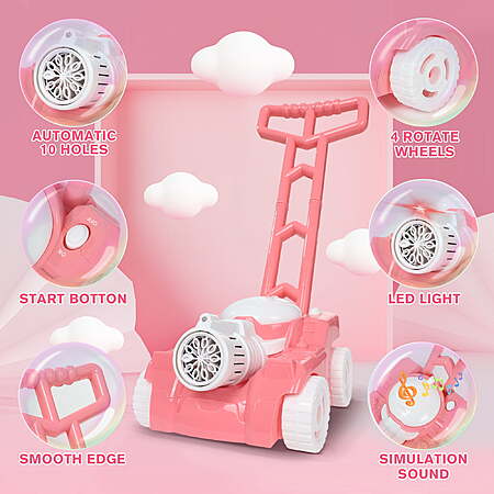 Walmart Black Friday Deals 2025 - Wisairt Bubble Lawn Mower for Toddlers, Automatic 10-Hole Bubble Blower with LED Lights, Pink & White - Walmart.com