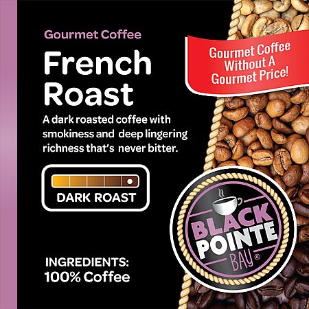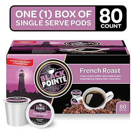 Black Pointe Bay Coffee French Roast, Light, Medium or Dark Roast, 80 Count, Single Serve Coffee Pods for Keurig K-Cup Brewers $21.22 S&S AMZ