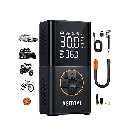 AstroAI L7 Tire Inflator Portable Air Compressor Cordless Mini Bike Pump with Digital Dual Values Display, 150 PSI Car Tires Air Pump with LED Lights & Pressure Gauge for $18.99