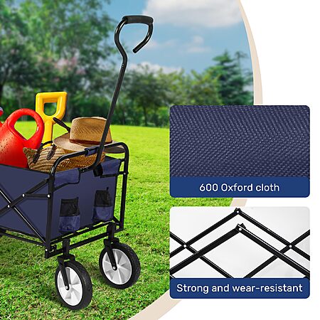Model: YSSOA Rolling Collapsible Garden Cart Camping Wagon, with 360 Degree Swivel Wheels & Adjustable Handle, 220lbs Weight Capacity,Blue