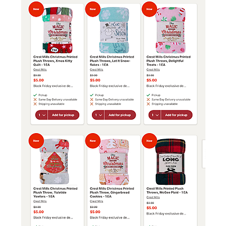 50” x 60” Holiday Throw Blankets (various) - $5 + free store pickup on $10+