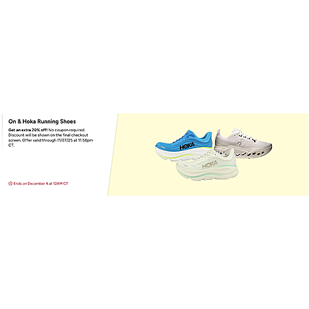 Woot![woot.com] has extra 20% off select Hoka and ON shoes. Discount automatically appears on FINAL checkout page.