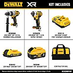 20V DeWALT 1/2" Hammer Drill/Driver + 1/4" Impact Driver w/ 2Ah + 8Ah Battery