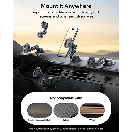 Model: ESR OmniLock for MagSafe Car Mount, Vacuum Magnetic Car Mount, 360° Adjustable Car Magnetic Phone Holder, Suction Cup Phone Holders for Your Car, for iPhone 17/16/15/14/13/12/Samsung, All Smartphones