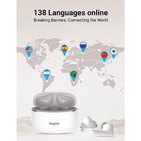 Model: Polypal P1 7 in 1 AI Translation Earbuds, Supports 138 Languages, Real-Time Spanish English Interpreter Headphones, Ideal for Live Speech, Online Learning, Travel, APP Work with iOS and Android