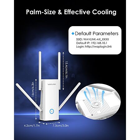 Model: WAVLINK AX3000 WiFi 6 Extender - Internet Extender WiFi Booster with 5 High-Gain Antennas & Beamforming, Dual Band Whole Home Coverage, Gigabit Port, Repeater/AP/Router Mode for 256 Devices