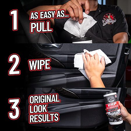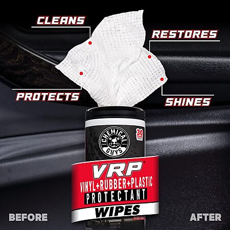 2-Pack 30-Count Chemical Guys VRP Vinyl, Rubber, Plastic Shine & Protectant Wipes Canister for Interior & Exterior Surfaces on sale for $18.98 - 25% when you 'clip' the coupon on product page - 5% when you check out via Subscribe & Save =