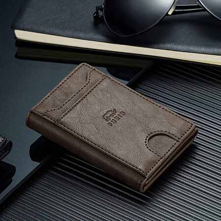 furid Slim Leather Trifold Wallet for Men (Brown or Black)