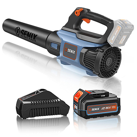 SENIX 20 Volt Max* Cordless Leaf Blower, Variable Speed, Lightweight, Up to 350 CFM and 80 MPH, (Battery and Charger Included) BLAX2-M