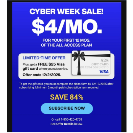 SiriusXM All Access Cyber Week Promo $4/Mo For Your First 12 Mos + $25 Visa Gift Card