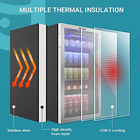 Amazon.com: EUHOMY Beverage Refrigerator Cooler, 130 Can Mini Fridge with Glass Door for Soda Beer or Wine, Beverage Cooler for Home, Office, Bar with Adjustable Removable Shelves, Silver : Appliances