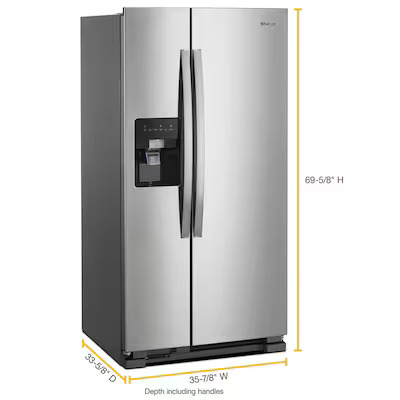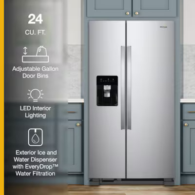 Model: Whirlpool 24.5-cu ft Side-by-Side Refrigerator with Ice Maker (Fingerprint Resistant Stainless Steel) | WRS325SDHZ