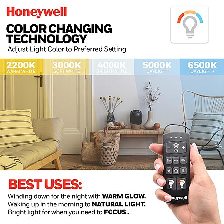 Honeywell Kaliza Ceiling Fan, Color Changing LED and Remote Control, 60", Black for $159.99.