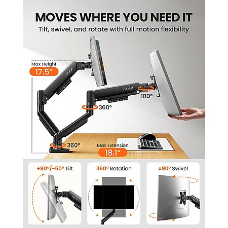 Prime Members: ErGear VESA Adjustable Dual Monitor Arms w/ Desk Mount (for 13-32" Monitors) $27.59 + Free Shipping