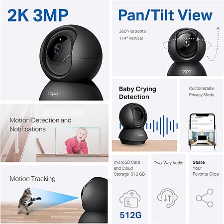 - Save footage continuously on up to a 512 GB microSD card (not included) or subscribe to Tapo Care for cloud storage which saves 30-day video history and provides additional benefits such as motion tracking, baby crying detection, and more. [Before purchasing a microSD card, please check the TP-Link website FAQ to ensure compatibility with your device.]
