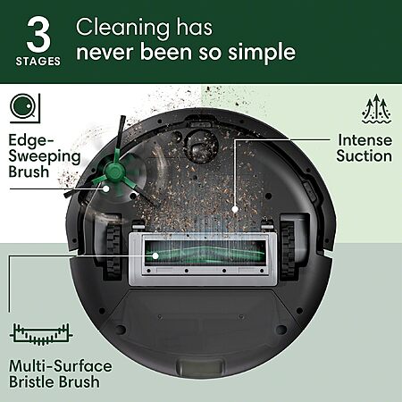 DEVOURS DIRT WITH 70X MORE POWER-LIFTING SUCTION*.​ 3-Stage Cleaning includes 70X more power-lifting suction*, a Multi-Surface brush, and Edge-Sweeping brush to devour dirt and dust bunnies and leave floors barefoot clean. *As compared to Roomba 600 series robots