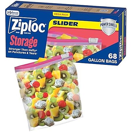 [S&S] $6.77*: 68-Count Ziploc Gallon Food Storage Power Shield Technology Slider Bags at Amazon