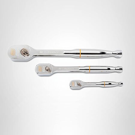 GEARWRENCH 120XP Ratchets are the ultimate ratchet for your fastening needs! Equipped with two double-stacked 60-tooth pawls, each ratchet offers an impressive 120 positions and a 3° swing arc, enabling swift turns even in tight spaces. The double-stacked pawls ensure exceptional strength as they engage the 60-tooth gear. Designed with your comfort in mind, the ergonomically contoured handles provides optimal leverage, comfort, and control. Each ratchets compact head design, up to 22% more compact than existing ratchets, allows for better access to those hard-to-reach fasteners. The enclosed head design guarantees extreme resistance to dirt infiltration, while the highly visible on/off markings on the head allow for quick identification. With a bright, full polish chrome finish, this ratchet not only easily wipes clean but also resists corrosion, ensuring long-lasting durability. Experience unparalleled performance with the GEARWRENCH 120XP Ratchets.
