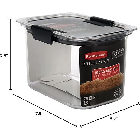 Rubbermaid Brilliance Pantry Airtight Food Storage Container, BPA-Free 7.8 Cup, Ideal for Brown Sugar - Efficient, Leak-Proof and Dishwasher-safe