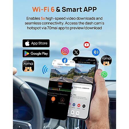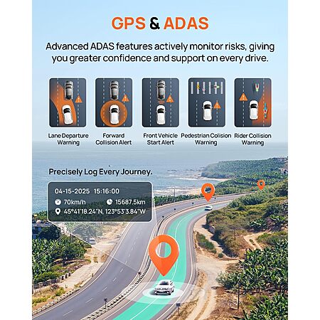70mai A800SE 4K Dash Cam Front and Rear Car Camera with 128GB Card, Super Night Vision, ADAS, 3'' IPS screen