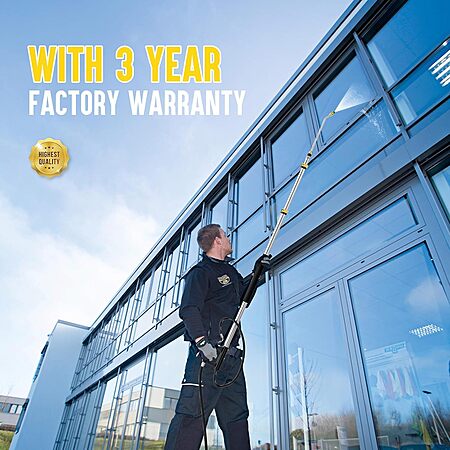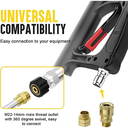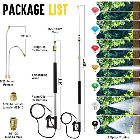 - 【Good Compatibility】With wealth of accessories, the telescopic lance is compatible with most gas-powered and electric commercial grade pressure washers up to 4000 PSI/8GPM. Connect with 3/8 inch quick-plug inlet fitting, 2 adapters (metric M22-14mm, M22-15mm fitting). No water leaking.