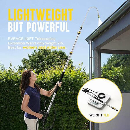 Product Description from Amazon- 【Professional Grade Pressure Washer Telescoping Wand】EVEAGE Telescoping Lance made of HEAVY DUTY aluminum and stainless steel.The whole body of the pole is built with high-density aluminum alloy.And stainless steel and solid brass are used to make extended accessories.Premium Quality keep the wands safe and stable for outdoor cleaning with longer service life.