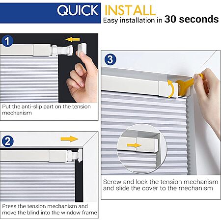 • No Drill Blinds: LazBlinds patented technology No Tools-No Drill system allow it no need to drill any holes on your window frame, great for Renter, Landlord, and Home Buyer. Easy to Install in 30 seconds. Fit All Kinds of Walls, like woodiness metope, tile marble, concrete wall and rough tile.