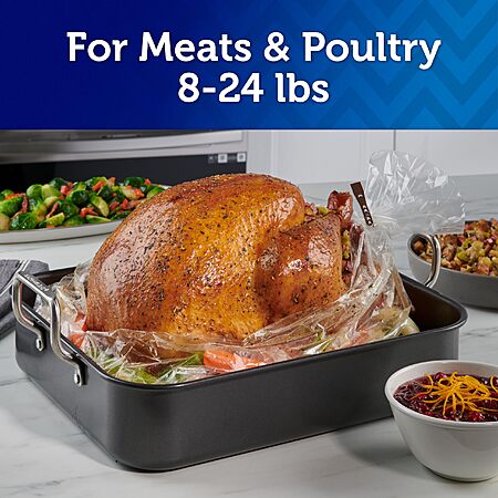 • Turkey oven bags accommodate turkey and other meat weighing up to 24 pounds