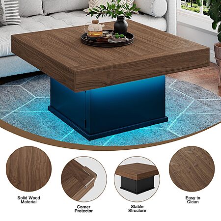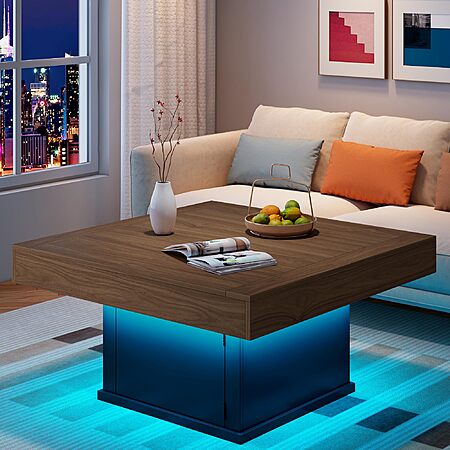33.5" Square Coffee Table w/ Storage & RGB (Vintage Brown) $79.04 + Free Shipping