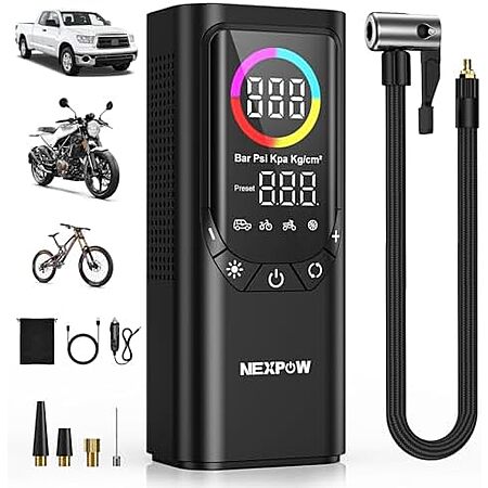 NEXPOW Direct via Amazon has Nexpow 150PSI 9000mAh Cordless Air Compressor w/ Digital Tire Pressure Gauge (Black) for $23.99 - 30% automatic discount at checkout = $16.79. Shipping is free with Prime or on $35+ orders.