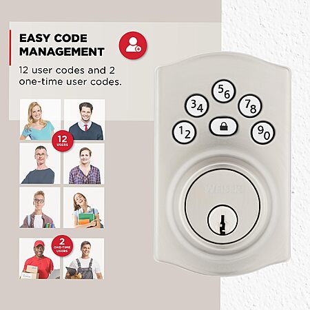 $36.35*:Kwikset Powerbolt 240 5-Button Keypad Satin Nickel Traditional Electronic Deadbolt Door Lock, Featuring Convenient Keyless Entry, Customizable User Codes and Auto-Locking