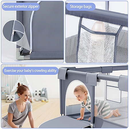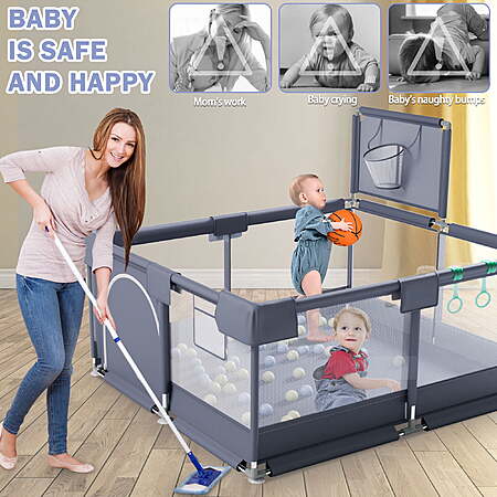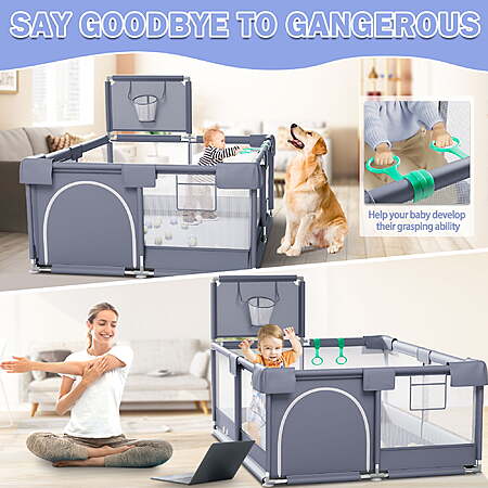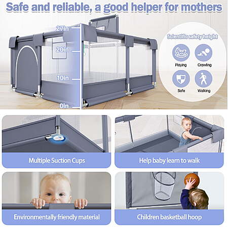 Walmart Black Friday Deals 2025 - Babyeap Baby Playpen, Play Yard, Toddlers Playards, 50"x50" Infant Travel Fence with Basket, Gray - Walmart.com