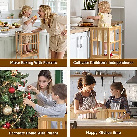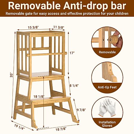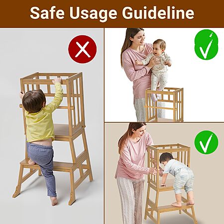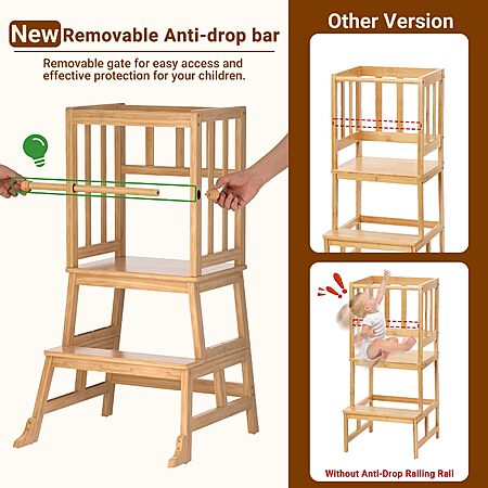 Model: COSYLAND Kids Kitchen Step Stool,Toddler Standing Tower with CPC Certification, Removable Anti-Drop Railing Safety Rail Enjoys Unique Patented Design A Anti-tip Structure More Stable, Natural Bamboo