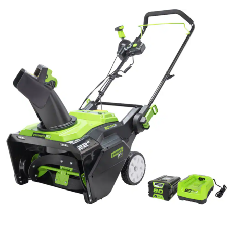 Greenworks - 80V 22” Cordless Brushless Snow Blower with 4.0 Ah Battery and Rapid Charger - Black/Green $524.99
