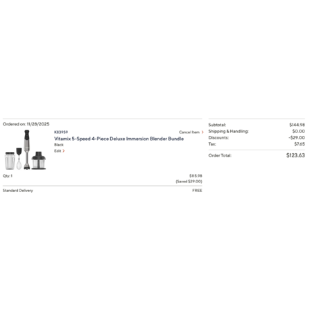| Product Description: | 'Tis the season to try trending recipes and rediscover treasured favorites with this Vitamix five-speed immersion blender. No need to transfer hot liquids or messy mixtures to a separate blender. It's your go-to tool for quick, easy blending right in your bowl, pot, or pitcher. From internet-famous whipped coffee to your homemade guac to sweater-weather classics like butternut squash soup and pumpkin pie filling, this powerful go-to gadget whips up wow results without crowding your coveted counterspace. Hungry for more? One word: attachments!