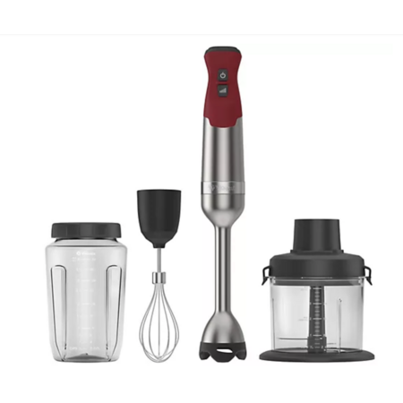 Includes immersion base, immersion blade attachment, whisk attachment, 3-cup mini-chopper container with three-point blade, and 32-oz blending jar with lid