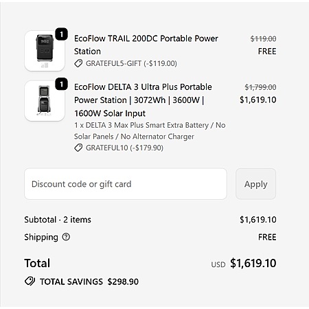 WITH Delta 3 Max Plus EXTRA Battery (2kWh) for $1799 - use code