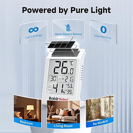 Prime Members: BaldrTherm Solar-Powered Room Thermometer & Indoor Humidity Meter