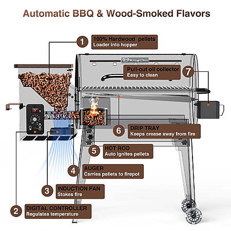 KingChii 456 SQ.IN. Wood Pellet Grill & Smoker with Automatic Temperature Control $208.99